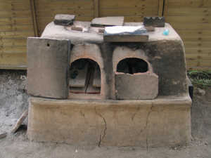 This had been protected during the winter with an insulation layer of dry hay in plastic sacks and covered with a plastic sheet, so it had been kept dry and frost-free. There was, however, some damage to the stoke hole entrance and one of the shelves had fallen off.