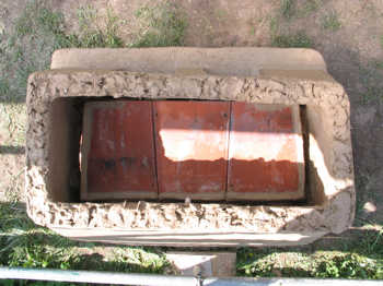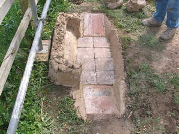 The timber struts visible in photographs 21 - 29 were put in as temporary supports for the sides of the lehr, which were not drying quickly enough and had started to sag under their own weight.