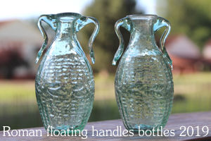 Our Amarna Fish and other core-formed glass Gold Band Glass Project: In May 2016 we worked with an Italian PhD student to investigate the techniques used for making gold band glass vessels. Using the Villa Borg facilities we worked on reproducing Hellenistic gold band glass alabastra as well as doing some preliminary work on early Roman small gold band glass bottles and pyxides (small cylindrical lidded pots). We continued this work in June 2016, making good advances in pyxis lid and body-forming techniques as well as achieving some encouraging results in making gold-band glass bottles (a blend of non-blowing and blowing techniques). The techniques used in making these bottles put these vessels at the very beginning of glassblowing, along with other small mosaic and monochrome bottles. N.B. They are likely to be later than the blown glass and glass waste found in the Jerusalem pit and dated c.60BCE. We see the Jerusalem glass as a separate event and not necessarily connected to later glassblowing.
