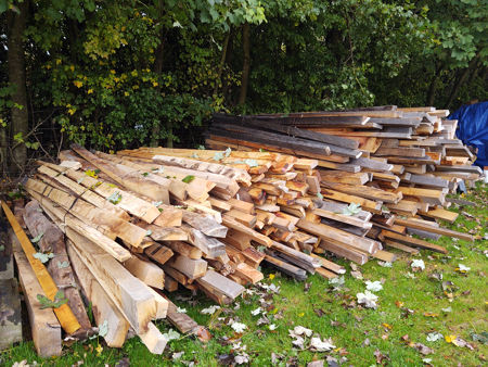 For the 2022 and 2023 firings, we had deliveries from the sawmill of English Oak and Opepe in the autumn, and some trailerloads of Beech and Ash after the November tornado. |