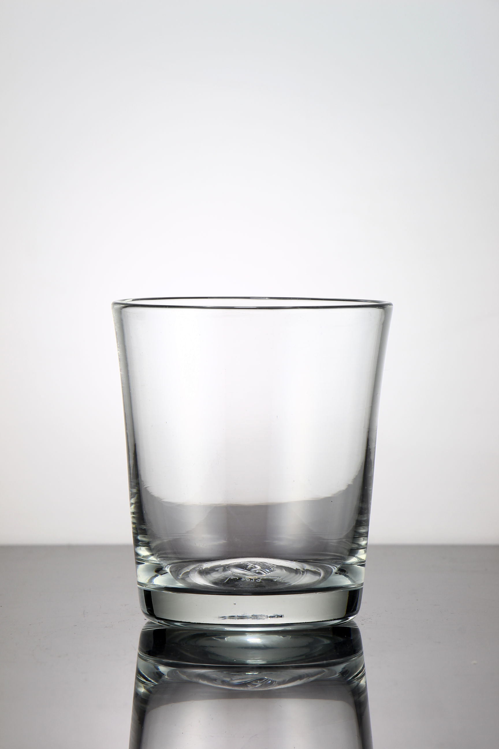 Whisky tumbler with with slightly flaring sides and heavy base.