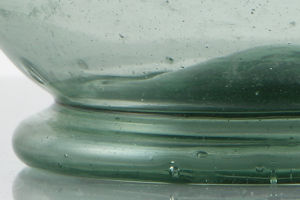 These vessels were blown at our wood-fired furnace. They all have some attack from the furnace atmosphere on their outer surfaces - some more so than others. It usually shows as a dulling and milkiness on the surface. See this page for a short discussion on this phenomenon. Please look at the large photos by clicking on the thumbnail photos, although the effect is not always noticeable on them.